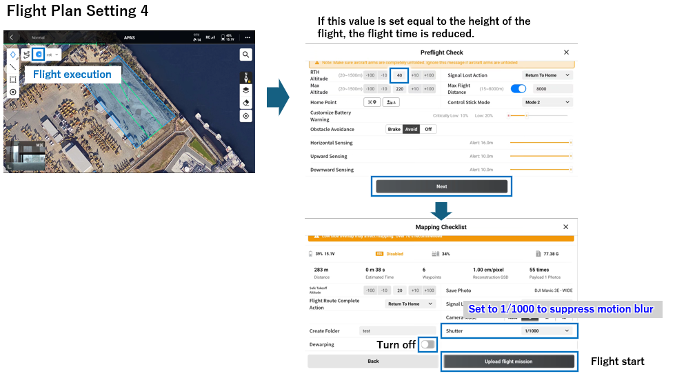 How to set the flight settings for the Mavic 3E when using Edge2.