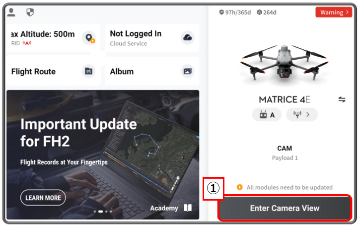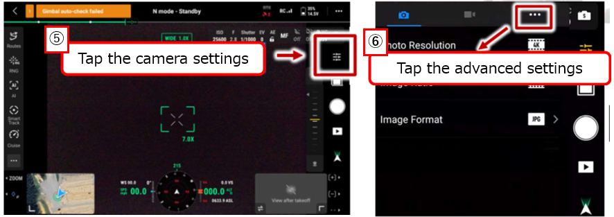 | ③ Shutter setting 1/1000 | ④ Upload flight mission |