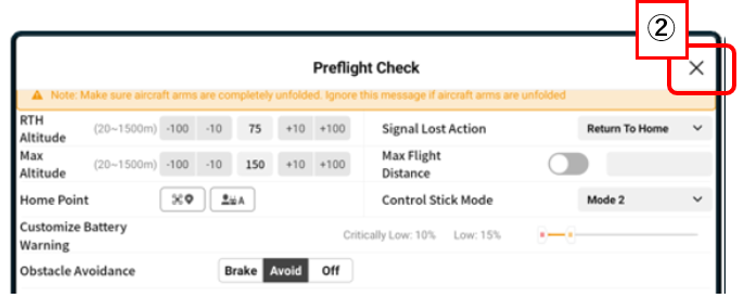 | ① Altitude Mode AGL(Above Ground Level) | |