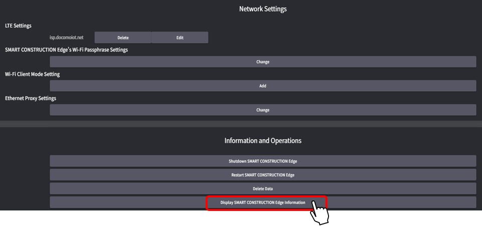 After uploading, tap the gear symbol in the upper right corner of the app screen in the tablet, scroll down to the settings screen, and select "Display SMART CONSTRUCTION Edge Information".