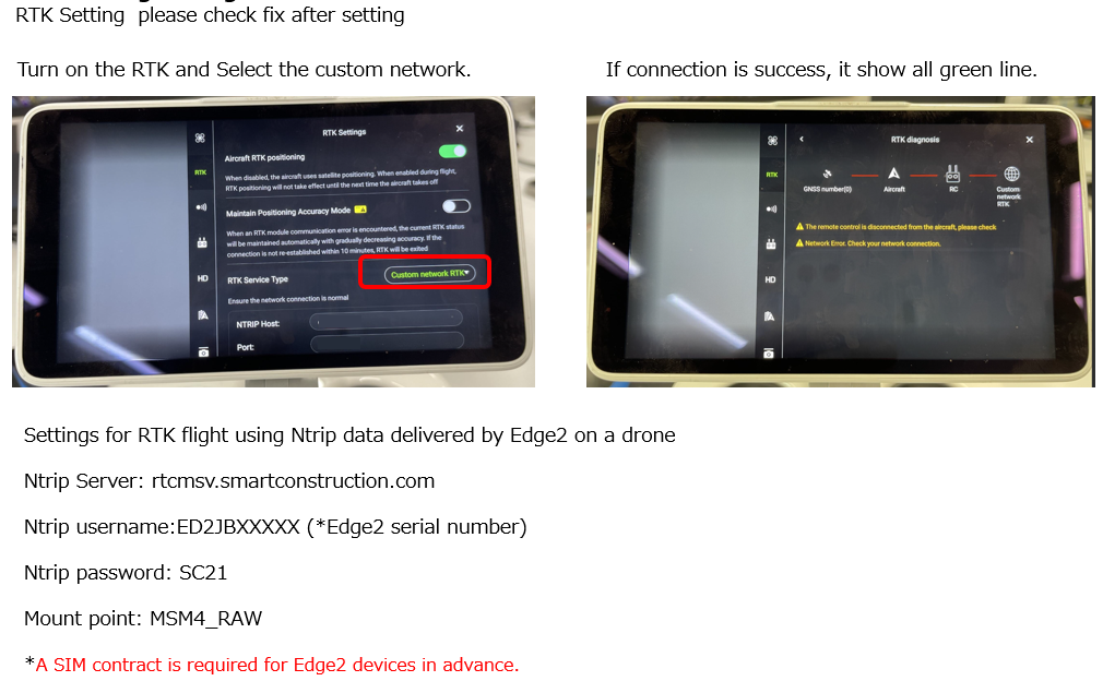How to set the flight settings for the Phantom 4RTK when using Edge2.